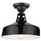 Progress Lighting Perry Court 1-Light Gloss Black Outdoor Industrial Semi-Flush Mount Ceiling Light