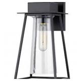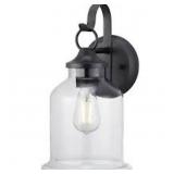Progress Lighting Lindberry 1-Light 11.5 in. Textured Black Outdoor Wall Lantern with Clear Glass