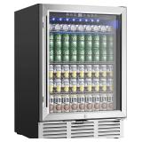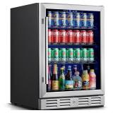 EUHOMY Beverage Refrigerator Cooler, 128 Can Mini Fridge with Glass Door for Soda Beer or Wine, Beverage Cooler for Home, Office, Bar with Adjustable Removable Shelves, Silver