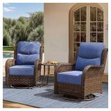 (167) Outdoor Swivel Rocker Patio Chairs with 6-Inch Thick Cushions and Side Table, 3PCS High Back Wicker Patio Furniture Set for Porch, Balcony, Deck and Yard in Blue