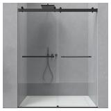 (188) 56-60” x 76” Frameless Shower Door, 5/16" (8mm) Clear SGCC Tempered Glass, Bathroom Dual Sliding Shower Doors, Matte Black