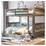 Wood Bunk Bed with Drawers,Convertible Wood Bunk Bed with Ladders and Two Storage Drawers,Solid Wood Detachable Bunk Bed Frame with Ladders,Full Over Full,Grey