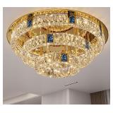 (129) 7-Tiers 22 Lights Gold Crystal Chandelier Luxury 35.46" Modern Contemporary Crystal Pendant Ceiling Lighting Crystals Light Fixture for Living Room Hotel Lobby Restaurant Foyer High Ceiling