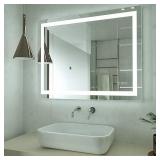 40 x 32 inch LED Lighted Bathroom Mirror, Wall Mounted Dimmable Makeup Vanity Mirror, Tempered Glass Anti-Fog Mirror, 3-Color Adjustable Warm/Natural/White Light, Horizonal & Vertical, ETL Listed