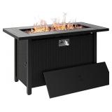 Walsunny 45 inch Outdoor Propane Fire Pit 50,000 BTU Gas Fire Pit Table with Lid, Lava Rock, Waterproof Cover, Rectangle Gas Firepit Table for Garden/Patio, CSA Certification