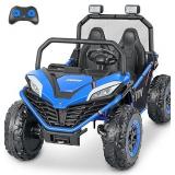 ELEMARA 24V 2 Seater Ride on Toys for Big Kids with Remote,10AH Battery Operated Electric Car, 4WD 4.5mph Side by Side Vehicle Kids with Bluetooth,LED,3 Speeds,Soft Star,Spring Suspension for 3-8,Blue