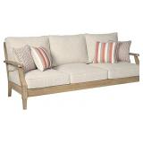 Signature Design by Ashley Clare View Coastal Outdoor Patio Eucalyptus Sofa with Cushions, Beige