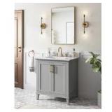- 24 in. W x 32 in. H Rectangular framed wall mount vanity mirror