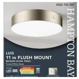 Hampton Bay Stetson 11 in. Transitional Satin Bronze 5CCT Integrated LED Flush Mount with Frosted Clear Glass Shade for Kitchen