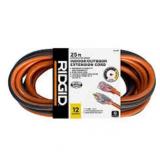 RIDGID 25 ft. 12/3 Heavy Duty Indoor/Outdoor Extension Cord with Lighted End, Orange/Grey