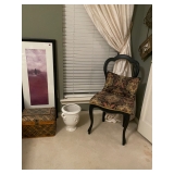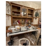 Outdoors: Huge amount of yard décor, planters and metal plant baskets and hangers Teak bench and chairs Some yard equipment Storage shelving units