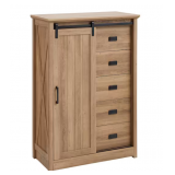 5 Drawers Pantry Organizers with Sliding Barn Door, Tall Dresser 5 Chest of Drawers, Storage Organizer in Oak