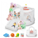 JOYMOR 4-in-1 White Inflatable Bounce House with Slide & Balloons