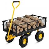 1500 lbs Capacity: This steel dump cart features a reinforced frame and solid steel floor to safely haul 1500 lbs of sand, gravel, firewood, or rocks. Raised steel sides and a tailgate prevent spillage, while the tilpping bed ensures effortless dumping.