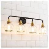 LIGHTACCENT Clear Glass Ceiling Fan Light Covers, Glass Lamp Shade Replacement for Ceiling Fans with Lights, Ceiling Fan Globe Replacement, Fan Light Cover, Black Light, 4-Pack Set of 4