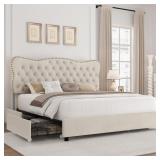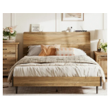 Linsy Home Wood Queen Bed Frame With Ergonomic Headboard & Storage Shelf, No Box Spring Needed, Brown (BOX 1 OF 2, NOT A COMPLETE SET)