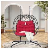 Double Egg Swing Chair with Stand - Outdoor Indoor Hanging Chair 600lbs Capacity, UV-Resistant Wicker Rattan Patio Basket Chair with Removable Cushions