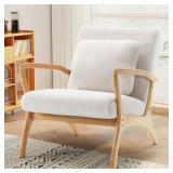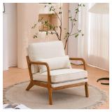 Karl home Accent Chair Mid-Century Modern Chair with Pillow Linen Fabric Upholstered Lounge Arm Chair with Solid Wood Frame & Soft Cushion for Living Room, Bedroom, Balcony, Beige