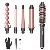 Wavytalk 5 in 1 Curling Wand Set, Multi Curl, Curling Wand Set with Curling Brush and 4 Interchangeable Ceramic Curling Wand(0.5”-1.25”), Instant Heat Up Wand Curling Iron (Rose Gold)