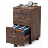 VINGLI 2 Drawer File Cabinet with Lock, Wood Dark Brown File Cabinets for Letter Size File Folders with Tabs, Under Desk Rolling Filing Cabinet for Home Office, Mobile File Organizer Printer Stand