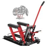 Hydraulic Motorcycle Lift Jack 1500 LBS with Wheels and Handle for Motorcycles ATVs Dirt Bikes, ALL Red