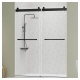 (48) DELAVIN 56"-60"W x 75"H Frameless Shower Door, Double Sliding Shower Door, 5/16"(8mm) Clear Tempered Glass, Noiseless Shatterproof Shower Door with Square Rail, Stainless Steel, Aluminum, Matte Black