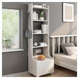 ALL IN ONE CLOSET ORGANIZER: Wood closet organizer set with tower, (3) expandable rods and (5) interior shelves (2 adjustable)