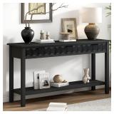 60-Inch Long Console Table, Entryway Couch Table Behind Sofa with Honeycomb Design Modern Versatile Hallway Table with 2 Storage Drawers for Living Room Entryway Foyer, Easy Assembly