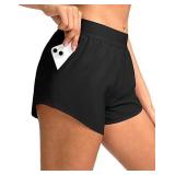 Soothfeel Women's Running Athletic Shorts with Zipper Pocket 3" Quick Dry Gym Workout Shorts for Women with Liner, MED,BLACK