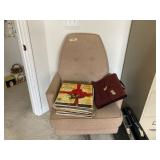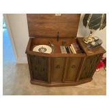 This sale is unique because we have boxes of vinyl records. A turntable. And a stereo system with speakers and turntable. We also have lots of plus size women's clothing hats shoes scarves purses, we have a king size bedroom suit with dresser and chest, two standing jewelry boxes, costume jewelry, rugs couch, small tables, dining room table with six chairs, China cabinet, China, dishware, pots and pans, sewing boxes, vintage hard suitcases, four desk, plant stands, plastic shelves, and much, much more. |