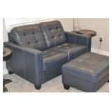 Navy Blue Leather Sofa and ottoman