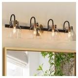 Uolfin Modern Gold Bathroom Vanity Light, 4-Light Black Wall Sconces with Clear Glass Shades