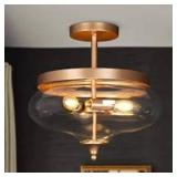 Uolfin Modern Gold Center-Bowl Bedroom Ceiling Light 3-Light Round Living Room Semi-Flush Mount Light with Clear Glass Shade