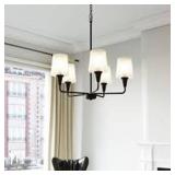Rviezza 5-Light Black Crystal Chandelier Luxury Ceiling Light with Drum Shade for Living Room, Entryway,Kitchen Island