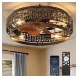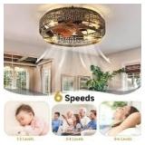 ARISKEEN 20 in. Indoor Caged Ceiling Fan with Light Low Profile Flush Mount Ceiling Fan with Remote Control(No Bulb)-Black