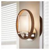 - Brushed nickel finish with etched opal glass