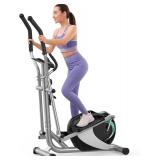 【HEAVY-DUTY & ERGONOMIC DESIGN】This elliptical exercise machine is made of a sturdy steel frame with a capacity of 265 lbs. The 13.8 "(L) x 6.3"(W) large and non-slip foot pedals provide you with a superbly comfortable and safe workout experience. Fits for the height of 4'9"-6'1”. The convenient bottle holder attached allows you to stay hydrated after working up a sweat
