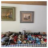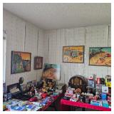 WELCOME TO A VERY ECLECTIC ESTATE SALE IN RANCHO BERNARDO!! This sale has lots of rare unique, antique and vintage collectible items. Here are some of our highlighted items for sale: MONUMENTAL COLLECTIONS of Snoopy and Vintage RADIOS, antique and vintage books, children's books, Records, including over 20 Beatles records. COLLECTIONS of Ziggy, Bumpkins by Fabrizio for George Good, Joan Walsh porcelain items, carved ANRI figurines & music boxes. GLASS & CRYSTAL: Large collection of depression glass, including Hazel-Atlas glass, Steuben glass, Venetian/Murano art glass, Westmoreland, Fostoria, Cambridge, and other glass. POTTERY & CERAMICKS: Frankoma, Kay Finch ceramics, Metlox- Poppytrail -Vernon, Enesco, other. FURNITURE: *Jorgensen Furniture ~ Scandinavian Mid Century Modern wall unit / bookshelf; * RARE 1970's Vintage Postmodern Mirror Pedestal Stands, complete set of 3; * Large Hollywood Regency style glass top gold gilt wrought iron base rectangular coffee table; *1970's vintage Octagon end table by Drexel Furniture; *1920s Vintage beverage serving cart on wheels; *Original 1950's Mid Century Modernist HOMECREST Patio Furniture Lounge Chair; *John Van Koert for DREXEL Mid Century Modern Sideboard /Credenza (dated July 1958); * 1960's LINK- TAYLOR Lexington Solid Oak Wood High Boy Dresser, " CAMEO" Pattern; * 1960's LINK- TAYLOR Lexington Solid Oak Wood 9-Drawer large Dresser with Mirror, " CAMEO" Pattern; * Arts & Crafts style custom made Lectern Cabinet with storage; * Very Tall Victorian Period Antique (circa 1860's) Entryway Mirror with open shelves; * 1970's-80's Vintage ~ Ornate black and gold metal bed frame (queen size); *1930's-40's vintage solid Cedar wood Chest with applied Copper details, on wheels; * 1950's Chinese Solid Camphorwood Blanket Chest / Storage Trunk with Deeply Carved Relief Decor; * 1950's-60's Mid Century Modern Set of 4 Folding GATEFORD Chairs with stunning green Vinyl seat upholstery (Matching set was used in the "Police Academy" film); * Circa 1930's vintage French Country Style Storage Cabinet with Marble Top; * Set of 2 Mid Century Modern Vinyl Strap FINKEL Patio Chairs & Glass Top Table ; * Set of 2 MCM MALLIN For Good Life Swivel Outdoor Chairs;