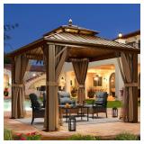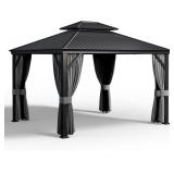 ***INCOMPLETE***YITAHOME 10x10ft Hardtop Gazebo with Nettings and Curtains, Heavy Duty Double Roof Galvanized Steel Outdoor Combined of Horizontal Vertical Stripes Roof for Patio, Backyard, Deck, Lawn