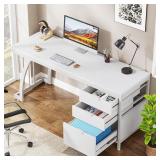 Tribesigns 59 Inch Computer Desk with 3 Drawers, Industrial PC Desk Study Writing Table Workstation with File Storage, Home Office Desks with Large Desktop and Metal Frame, (White)