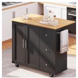 SUNLEI Kitchen Island on Wheels with Storage Cabinet & Foldable Drop Leaf, Rolling Kitchen Table, Cart Handle for Towel Rack, Drop Leaf, Portable Islands for Kitchen (Classic Black, 39.7-INCH)
