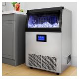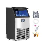 LIGHTWEIGHT COMMERCIAL ICE MAKER Our commercial ice maker is equipped with 45 ice cube trays and can produce up to 100 lbs (100.36 kg) of ice cubes per day (test conditions: 50-100.4℉ (10-38℃ ambient temperature). This compact ice cream maker has a generous storage capacity of 33 lbs (14.97 kg) and fits perfectly in your home, cafe, bar, drink shop or restaurant