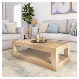Plank+Beam Modern Rectangular Coffee Table with Shelf, 48", Solid Wood Center Table with Storage, 2 Tier Tea Table for Living Room, Blonde Wirebrush