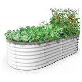 A ANLEOLIFE 6X3X2 ft Galvanized Raised Garden Beds Outdoor, Oval Large Metal Deep Root Planter Box for Planting Vegetables Flowers Herb, Anti-Rust & Easy-Setup, Antique White