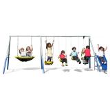 Sportspower 'Swing and Play' Galvanized Metal Swing Set 2 Swings+Standing, 2 Kid Roman Glider+Saucer, 5' Wavy Slide, EXCEEDS ASTM Safety Standards*4pc Anchor Kit*