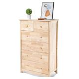 VINGLI Unfinished Natural Solid Wood 6 Drawer Dresser for Bedroom, Farmhouse Dressers & Chests of Drawers Color DIY Rubber Wood Tall Dresser with Full Extension Drawer Slides & Wood Knobs Rustic Style