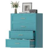 Blue Metal Dresser with 4 Drawer,39.3" Tall Chest of Drawers with Wide Metal Handle,Drawer Organizer for Bedroom,Living Room,Hallway and Entryway