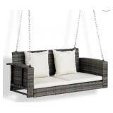 4ft Gray Wicker Hanging Porch Swing With Cushions & Chains