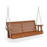 4 ft. Brown Wood Patio Porch Swing with Adjustable Chains, Support 880 lbs., Durable PU Coating