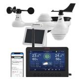VEVOR 7-in-1 Wi-Fi Solar Self-Charging Weather Station with 7" TFT Color Display, Solar-Powered Outdoor Sensor, Indoor&Outdoor Monitoring for Temperature, Humidity, Wind Speed/Direction and Rainfall